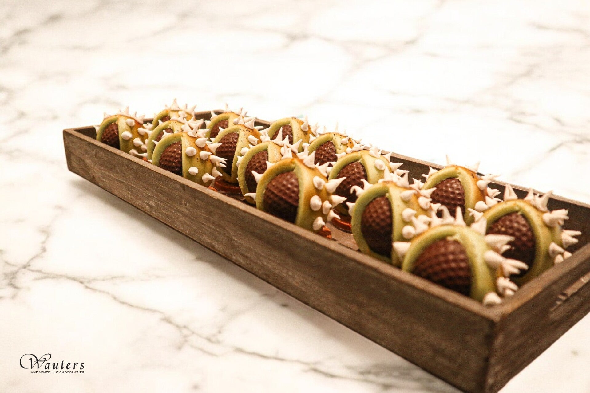Deze prachtige kastanjebolster is een echte smaak-bom ... gevuld met een combinatie van praliné en marspein.