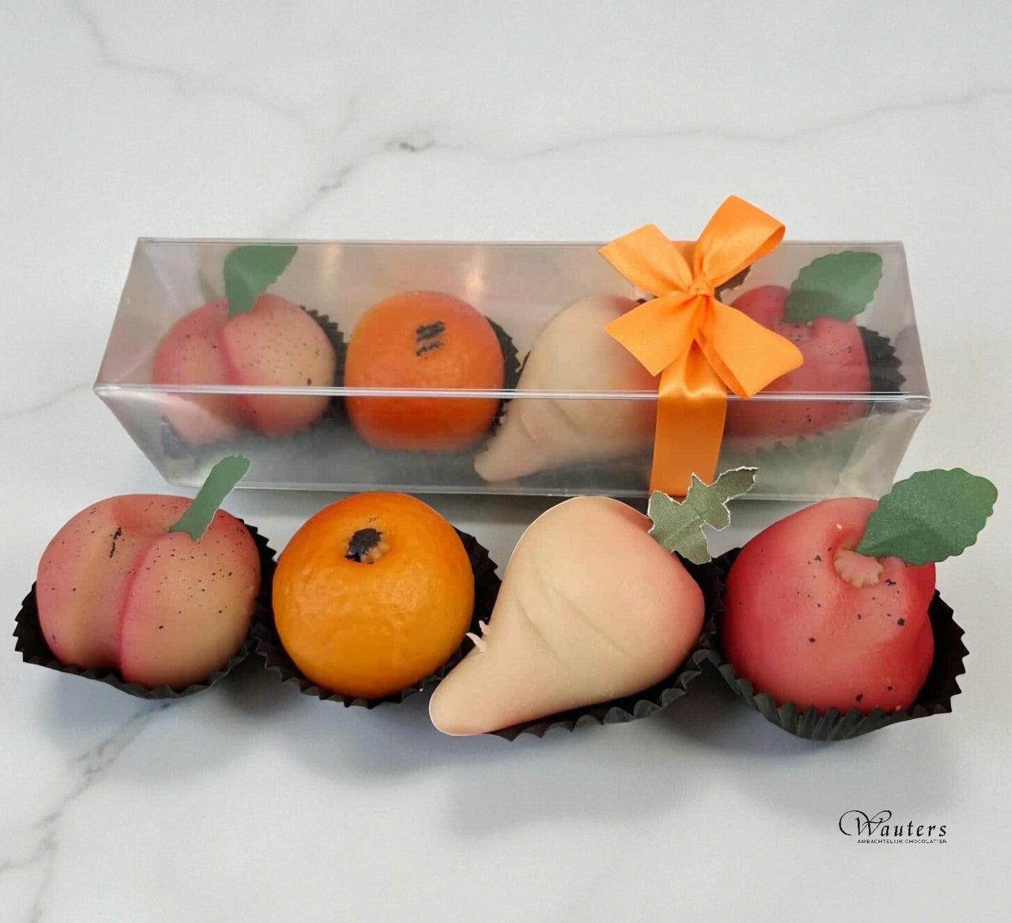 Het perfecte geschenk voor de marsepein liefhebber ... 4 stukken marsepein fruit mooi verpakt