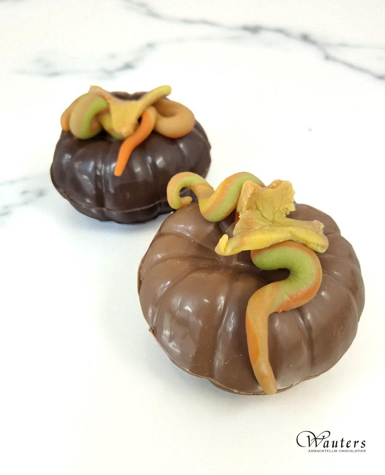 Mooi gevulde pompoen, afgewerkt met marsepein.