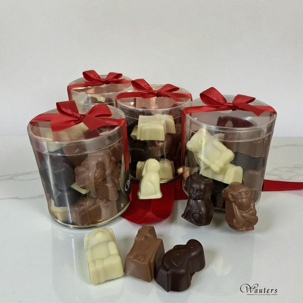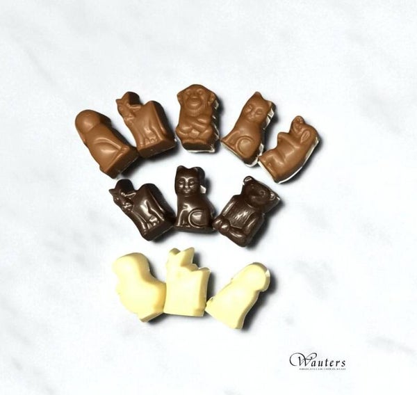 Puur = Praliné, Melk = Banaan, Wit = Gold-ganache