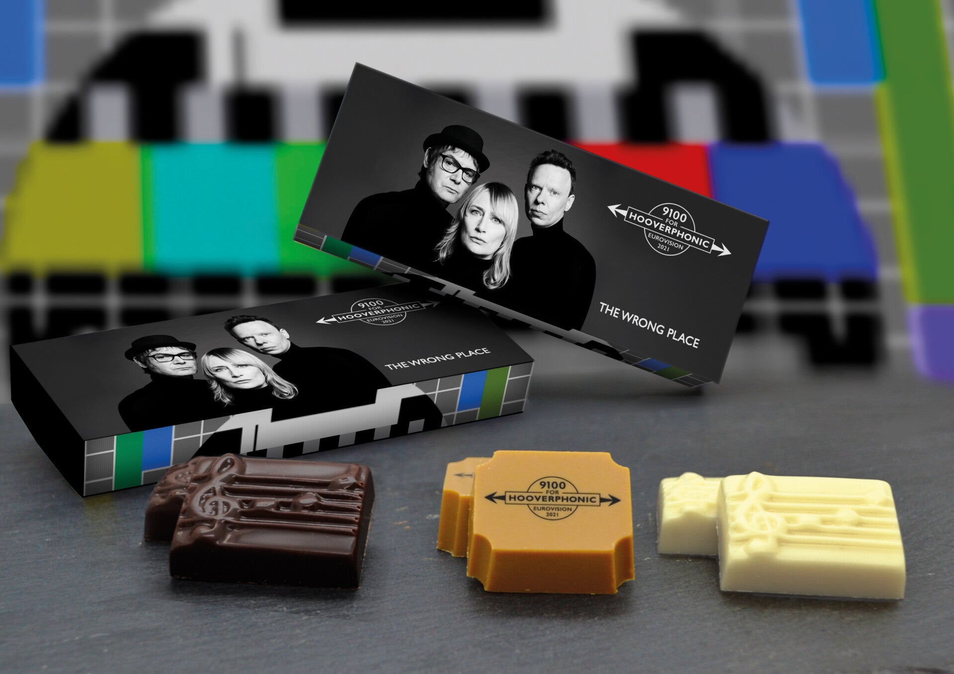 Geniet van deze heerlijke lekkernij : 4 pure muziek-pralines met koffie-smaak - 2 witte muziek-pralines met pistache en 2 GOLD logo-pralines. Want meedoen aan een wedstrijd is meedoen voor goud !