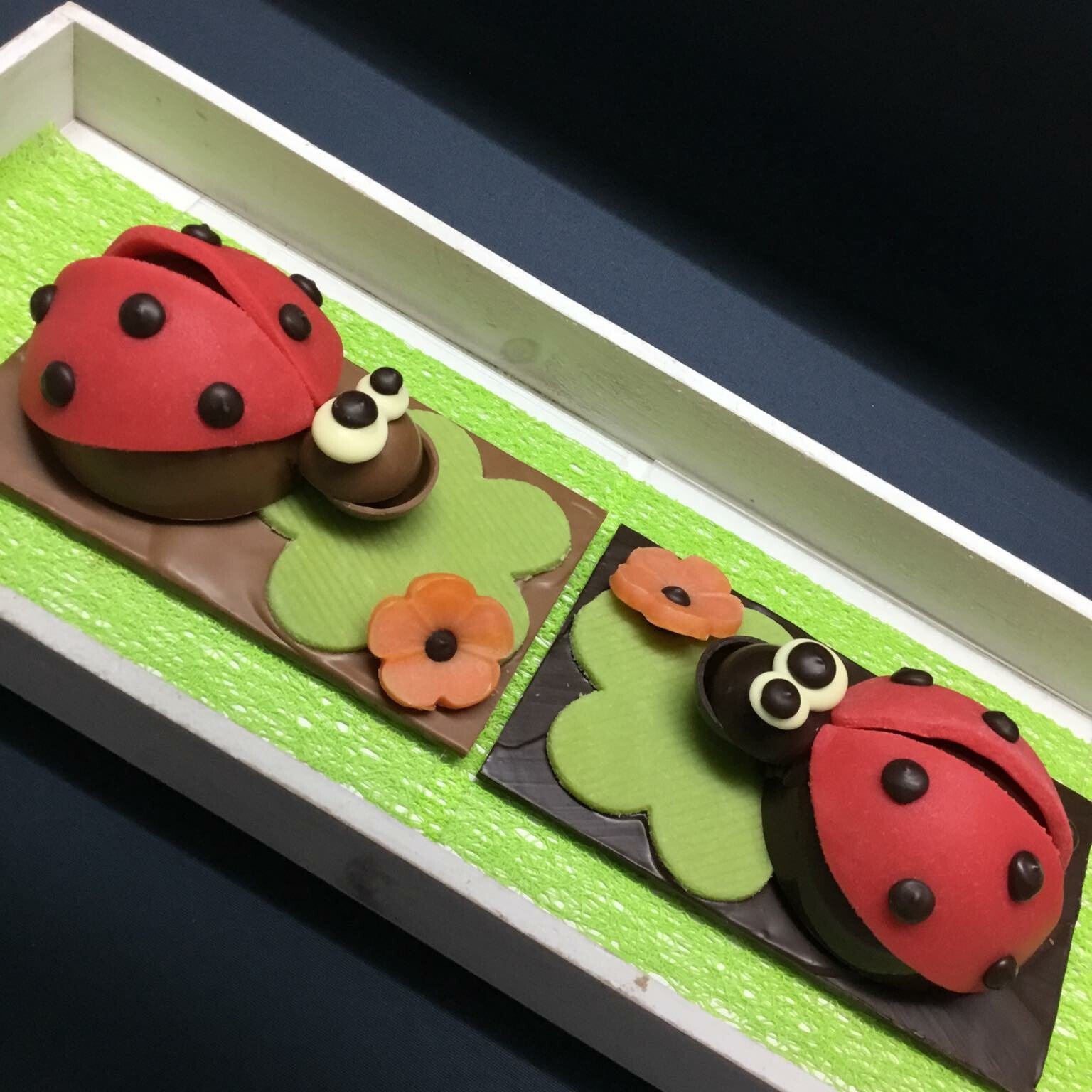 Dit schattige chocolade beestje heeft nog wat lekkers onder zijn vleugeltjes.