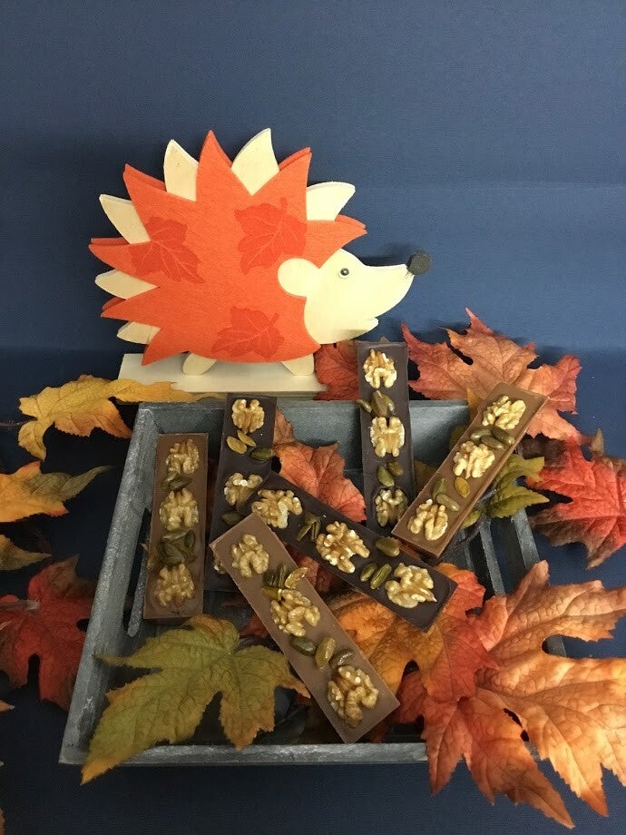 Notenbalkjes gevuld met een heerlijke amandelpraliné, pistache en hazelnootejs + een vleugje zeezout .... 😲