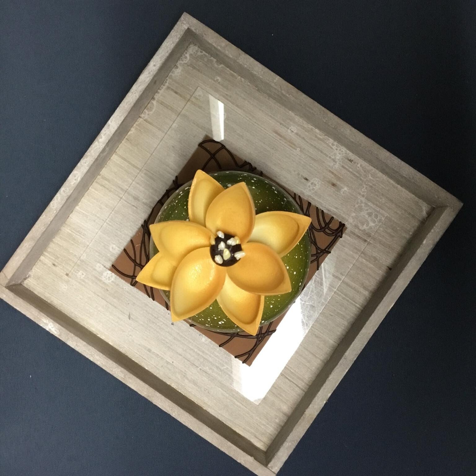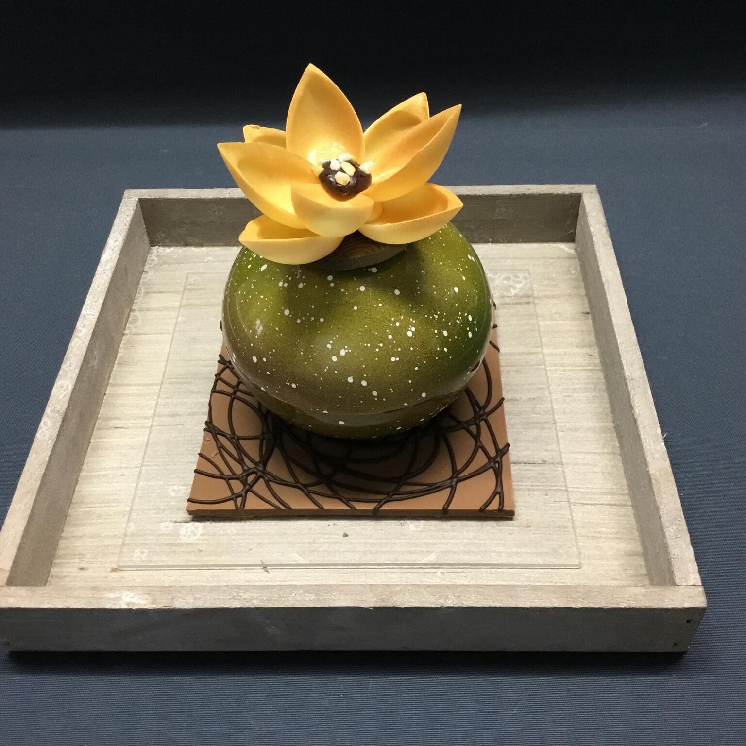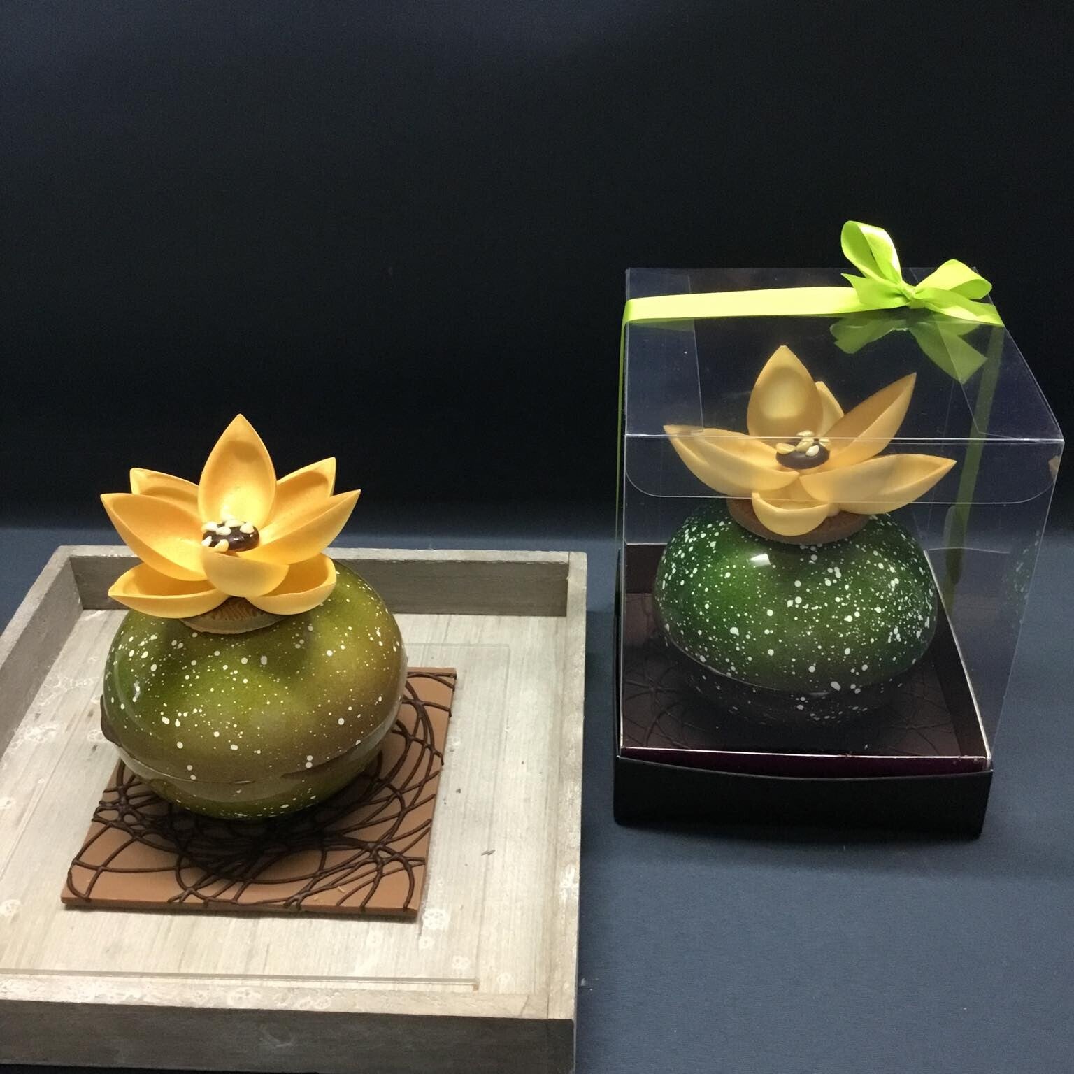 Deze supermooie eclipsbol met bovenop een prachtige chocolade lelie is gevuld met heerlijke pralines.