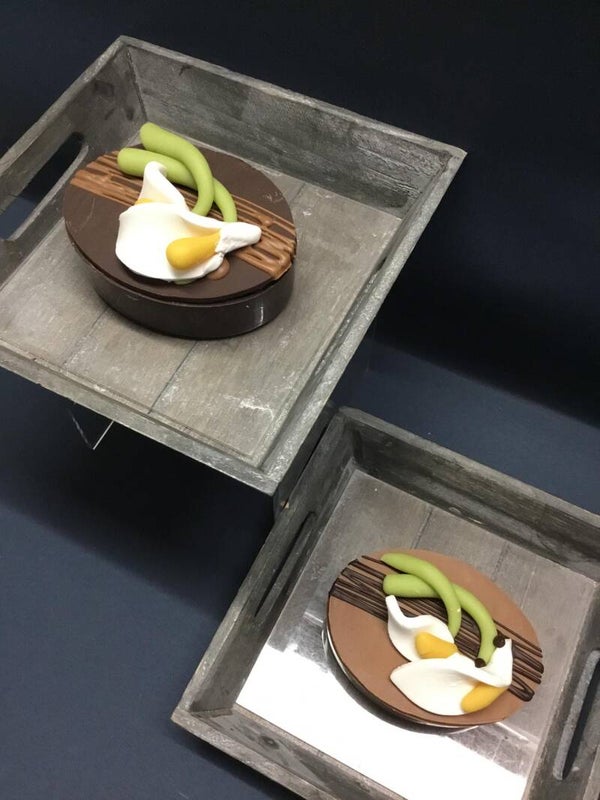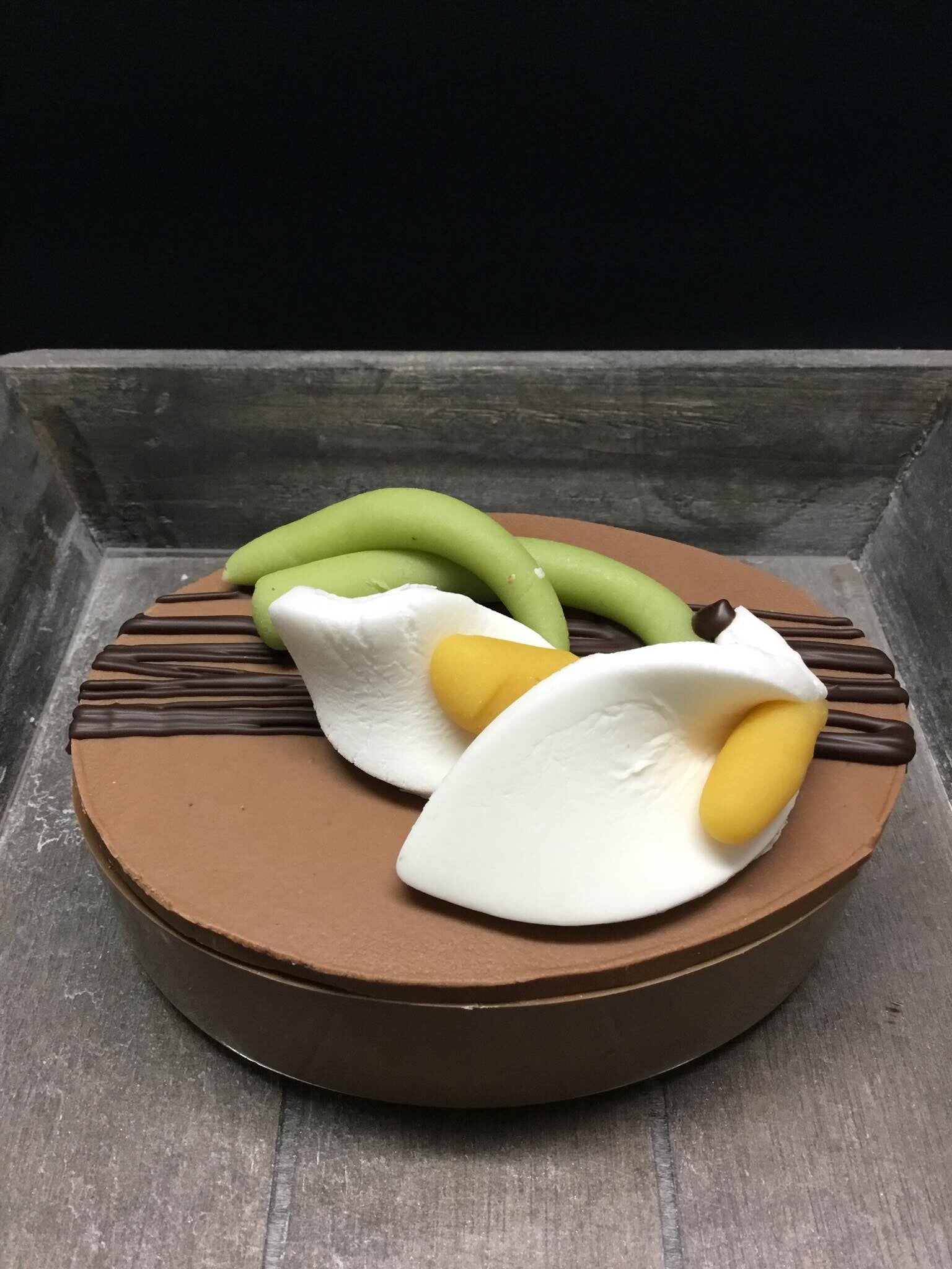 Deze ovale bonbonniere geeft volop de lente weer ... bovenop een mooie Aronskelk, binnenin heerlijk lekkers.